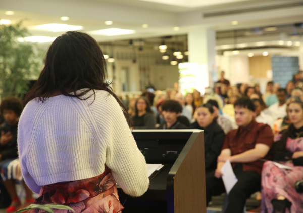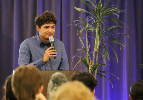 Axel Duran sharing his story last year at LISTEN 2025 in Choi Auditorium of Occidental College.